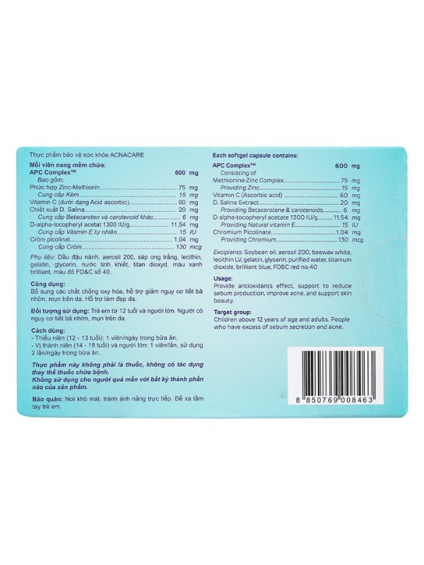 Hàm lượng Crom, Chromium picolinate, Vitamin E, D.Salina, Zinc, Zinc methionin, Vitamin C