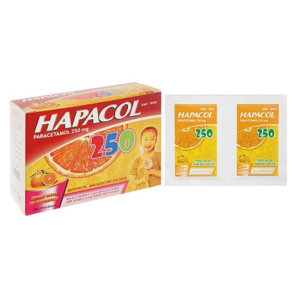 Bột sủi Hapacol 250 DHG giảm đau, hạ sốt (24 gói x 1.5g)