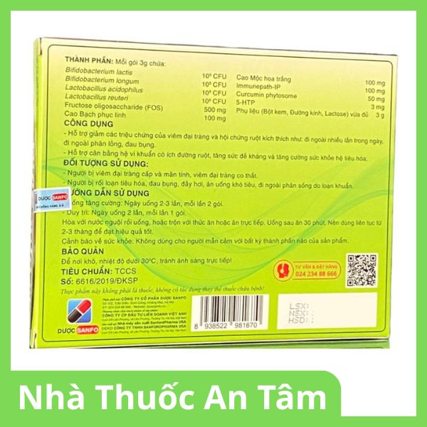 BifiSanfo Plus là sản phẩm men vi sinh thế hệ mới, được đánh giá cao nhờ công thức đột phá kết hợp giữa Y học hiện đại (Lợi khuẩn, 5-HTP, Công nghệ Phytosome) và Y học cổ truyền (Mộc hoa trắng, Bạch phục linh). Sản phẩm được sản xuất bởi Công ty CP SANFORDPHARMA USA trên dây chuyền đạt chuẩn GMP, mang lại giải pháp toàn diện cho người bệnh tiêu hóa lâu năm.