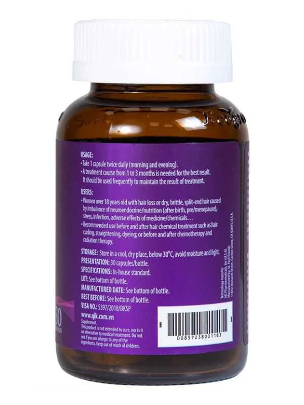 Viên uống QiK Hair For Women Ecogreen giúp giảm rụng tóc ở nữ giới, giúp tóc mọc nhanh (30 viên)