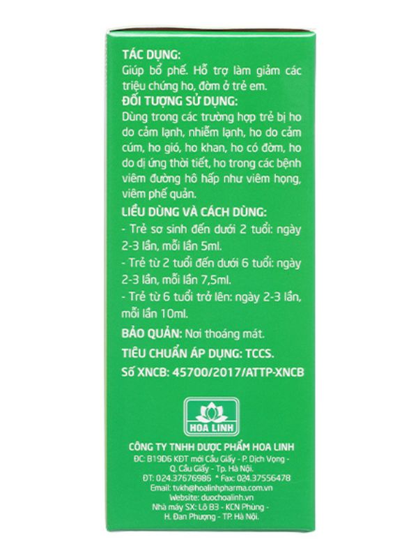 Bổ Phế Bảo Thanh Trẻ Em Hoa Linh điều trị ho do cảm lạnh, cảm cúm (100ml)