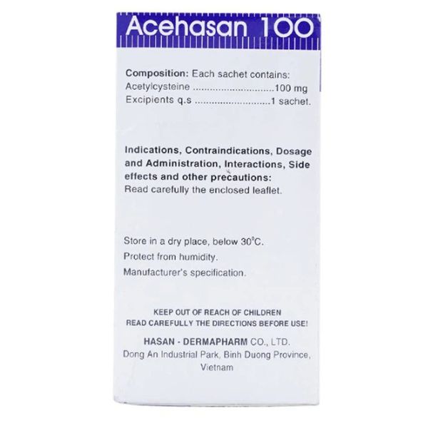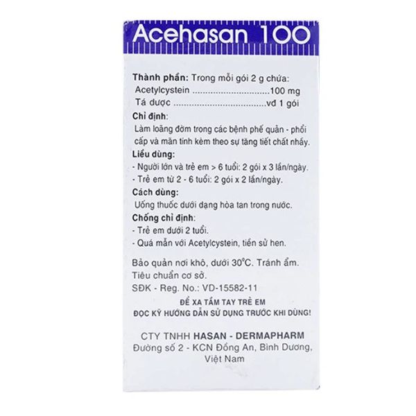 Thuốc Acehasan 100 điều trị rối loạn bài tiết chất nhầy phế quản (30 gói x 2g)