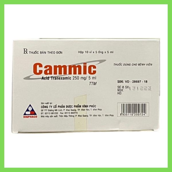 Thuốc Cammic 500mg/5ml điều trị và phòng ngừa chảy máu (10 vỉ x 5 ống)
