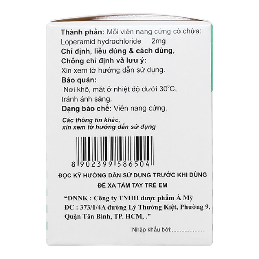 Mỗi viên nang cứng có chứa: Loperamide hydrochloride 2mg.