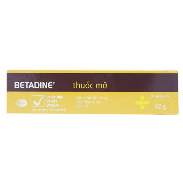 Thuốc mỡ Betadine Ointment 10% là một sản phẩm sát khuẩn dạng mỡ bôi chứa hoạt chất Povidone-Iodine, được thiết kế để hỗ trợ sát khuẩn, ngăn ngừa nhiễm trùng và bảo vệ các vết loét, vết thương hoặc vùng da tổn thương. Với đặc tính của dạng mỡ, sản phẩm này không chỉ tiêu diệt vi khuẩn mà còn duy trì độ ẩm, tạo lớp màng bảo vệ lâu dài cho vùng da bị ảnh hưởng.
