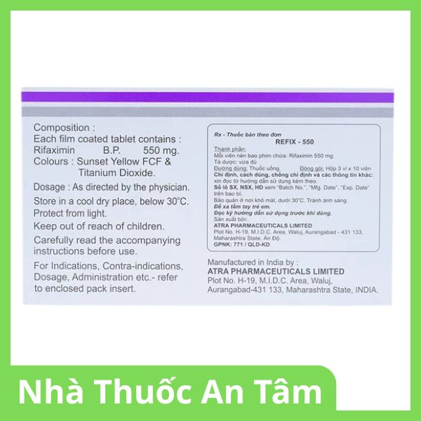 Thuốc Refix-550 là một trong những lựa chọn ưu tiên của các bác sĩ chuyên khoa tiêu hóa trong việc kiểm soát các bệnh lý nhiễm khuẩn đường ruột và biến chứng gan mật. Với đặc tính ít hấp thu toàn thân, thuốc mang lại hiệu quả điều trị cao tại chỗ mà vẫn đảm bảo tính an toàn cho người sử dụng.