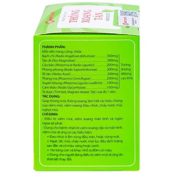 Hàm lượng Thăng ma 200mg Phòng phong 200mg Cảo bản 200mg Xuyên khung 100mg Bạch chỉ 300mg Tế tân 200mg Tân di 200mg Cam thảo 100mg
