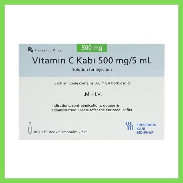 Thuốc Vitamin C Kabi 500mg/5ml phòng và điều trị bệnh Scorbut (1 vỉ x 6 ống )
