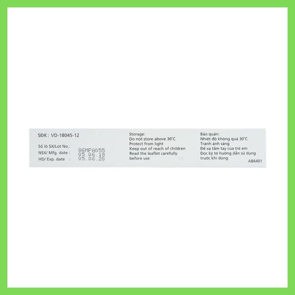 Quy cách đóng gói Hộp 1 Vỉ x 6 Ống