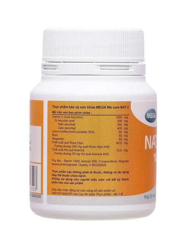 Viên uống Nat C 1000 cung cấp vitamin C cho cơ thể, tăng cường sức đề kháng (30 viên)